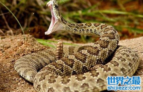 最后小编要给观众朋友们介绍的是出场自带声响的毒蛇,响尾蛇。它的身体花纹不想其他毒蛇的颜色那么有个性,而是像土一样的颜色。这个毒蛇不会主动攻击人类,如果不巧碰见敌人,会颤动自己的串串尾巴,发出声响。