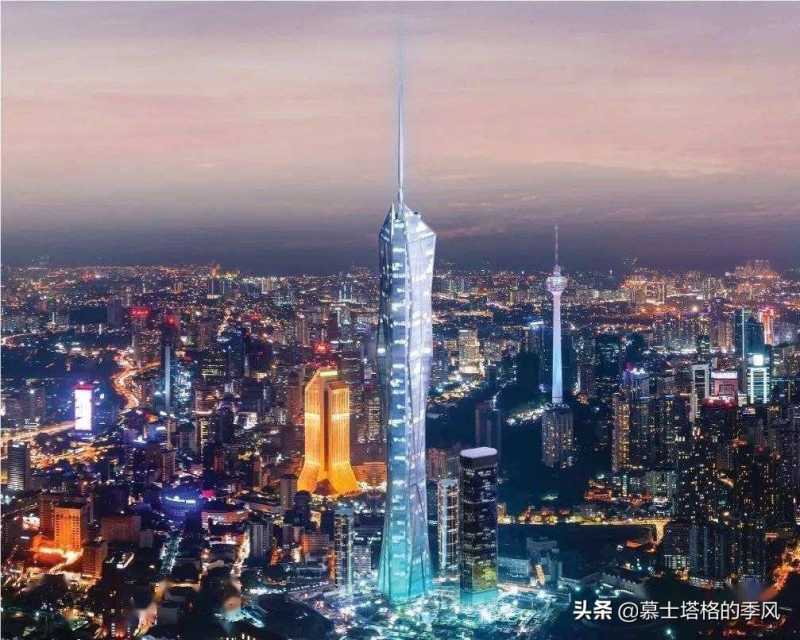 默迪卡118大厦位于马来西亚首都吉隆坡,建筑的最大高度达到了678.9米,超越了632米高的上海中心大厦,成为世界第二高摩天大楼,大厦已于去年年末举行了封顶仪式,今年将投入使用。整体建筑呈现水晶塔状,在不同方位都能感受到它的恢弘气势。