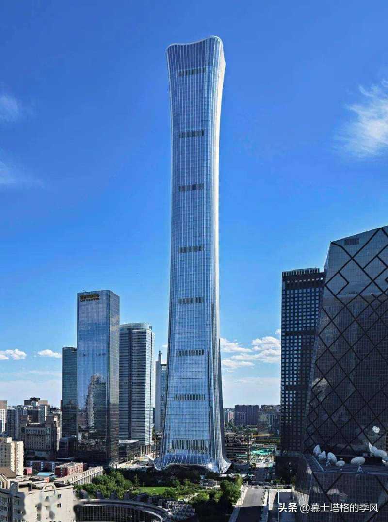 这栋大楼所在的国贸商务区是北京一个高楼林立的地方,即便是这样,中国尊在这里也是非常的显眼,是迄今为止北京的最高建筑。