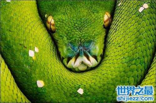 非洲树蛇,它的个头非常的小,颜色也是非常的亮呢,翠绿翠绿的身体躲在树丛里,让人无法一眼就看见呢,这也大大增加了它咬伤人类的事件呢,但是最让人感到庆幸的就是它一般不喜欢主动的进攻,但是前提就是你没有招惹它,人不犯它它不犯人。