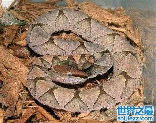 虎斑响尾蛇,这种蛇是在动物世界里面见得最多的一种蛇了,它尾巴后面的特征非常明显,使人一眼就知道它是响尾蛇,它主要生活在墨西哥西北部和美国西南部,它会主动攻击人,因此也被各大专家称为毒性最高的蛇。