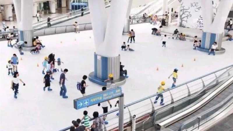 韩国仁川机场集合了香港和慕尼黑的两大特色,不仅有电影院,还有超级大的室内溜冰场,而且全面免费开放。