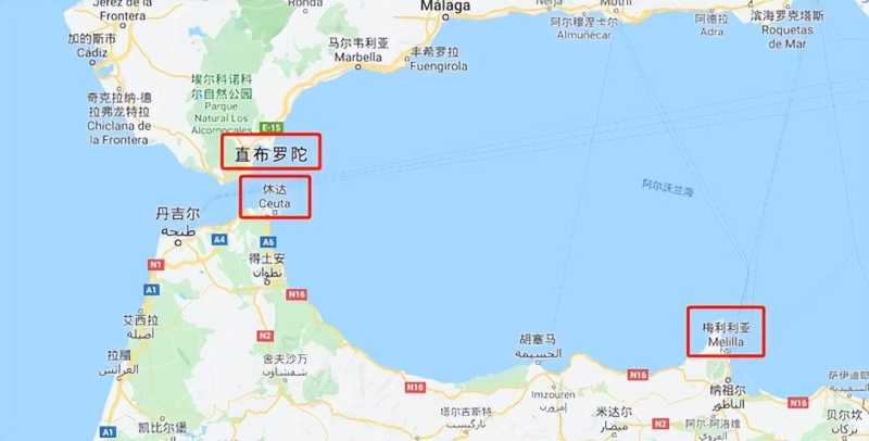 不仅仅是在霍尔木兹海峡有飞地,在著名的直布罗陀海峡,还有2块飞地,南北对称。