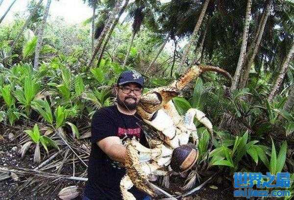 椰子蟹的体型硕大,外壳坚硬,配上两只强壮有力的巨螯,让它的模样看起来又凶又蛮横。它也是个爬树高手,尤其善于攀爬笔直的椰子树,而且它可以用强壮的双螯剥开坚硬的椰子壳,然后享用里面香甜的椰肉。所以它还有一个在国际上通用的名字――椰子蟹。