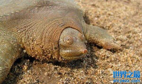 鼋属于巨型软壳龟,可以成长到大约2米长,重量可超过50公斤,多生长在内陆,在河流或溪水边觅食。鼋在中国是国家一级保护动物,分布于我国东南部、印度、东南亚以及新几内亚地区等。鼋的外形特征显着,其吻部极短,眼非常靠近吻端。一些成年个体背甲和头部带有浅黄色的散化状条纹。它可能是鳖科中形体最大的品种。