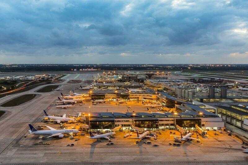 乔治布什洲际机场位于德克萨斯州休斯顿,占地 44.5平方公里。与华盛顿杜勒斯国际机场相比,这个机场的规模较小。然而它每年为 4500 万乘客提供服务。