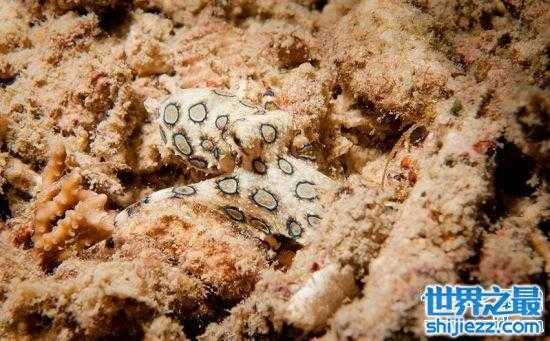 蓝环章鱼拥有一身美丽而诱人的章鱼,它拥有令人可怖的毒液,所以说如果遇到了这样的章鱼,那么一定要记得逃跑千万不可贪恋,尖锐的嘴可以说是可以刺穿一位潜水员的潜水衣,现在已经被证实它是海洋上最毒的生物。
