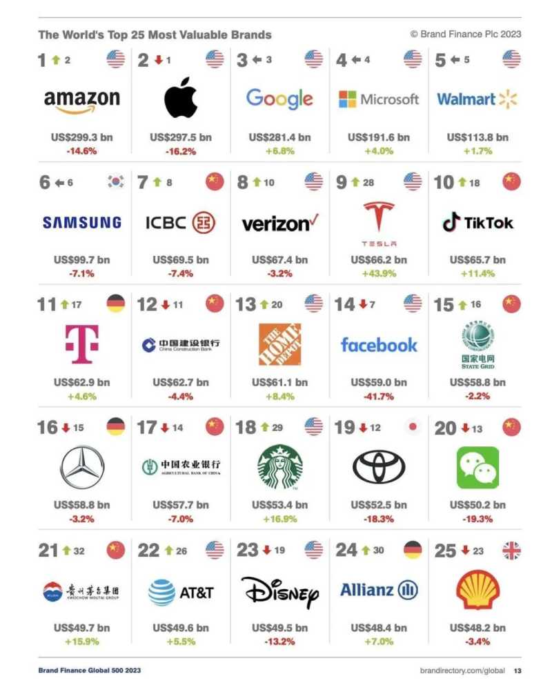 2023年世界上最有价值的十大品牌都是具有良好成功记录的全球巨头。他们都是各自行业的领导者,都有忠实的客户。