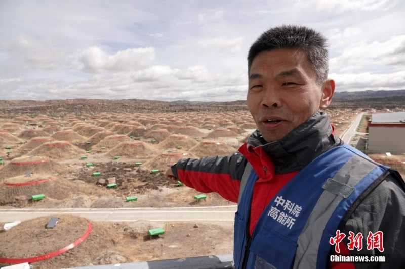 5月10日晚,中国国家重大科技基础设施——高海拔宇宙线观测站(英文缩写LHAASO,中文昵称“拉索”)顺利通过国家验收,标志着这一大科学装置开始向宇宙线起源的“世纪之谜”发起全面科研冲击。图为国家验收之前的4月22日,四川稻城海子山,“拉索”总工艺师、中国科学院高能物理研究所研究员何会海介绍大科学装置建设相关情况。中新社记者 孙自法 摄
