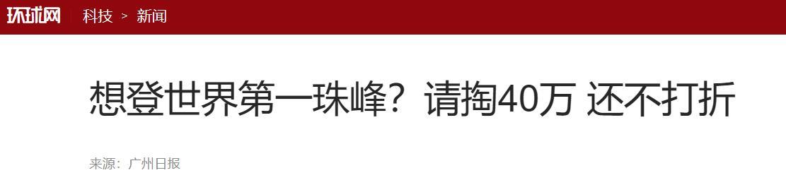 参考资料:广州日报——想登世界第一珠峰?请掏40万 还不打折