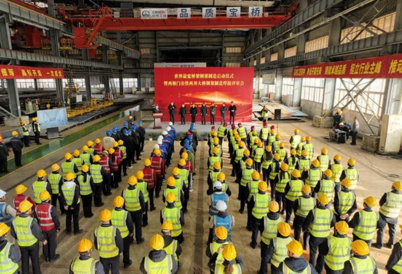 12月20日,甬舟铁路西堠门公铁两用大桥钢梁焊接评审会暨钢梁制造启动仪式在中铁宝桥舟山公司成功举行,这标志着宽度达68米的世界最宽桥梁钢梁制造正式启动。