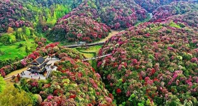 夏季洪水期瀑布宽度可达四五十米,落差极大,形成“千里黄河一壶收”的壮丽景象。 2. 百里杜鹃:位于贵州毕节,被誉为“世界上最大的天然花园”。景区内杜鹃花种类繁多,多达41个品种,每年3月底至4月末是最佳花期。
