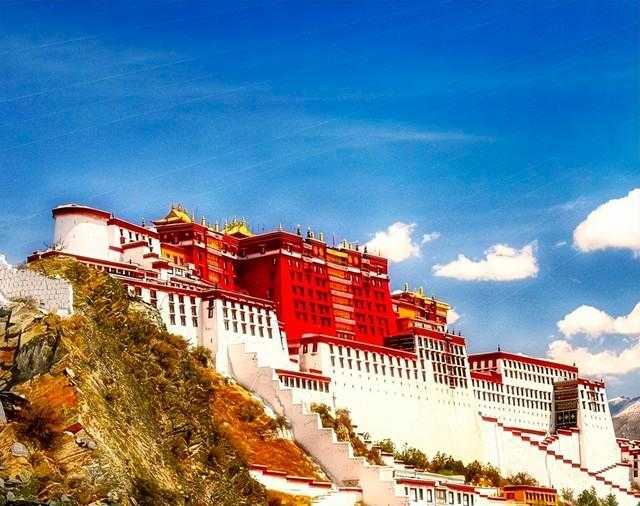 3. 布达拉宫:位于西藏拉萨,是世界上海拔最高的宫殿,距今已有1300多年的历史。 宫殿内珍藏着大量佛像、壁画、唐卡等文物。
