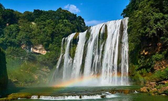 5. 黄果树瀑布群:位于贵州安顺,是世界上最大的瀑布群之一。 黄果树大瀑布高度达到77.8米,宽101米,气势磅礴。