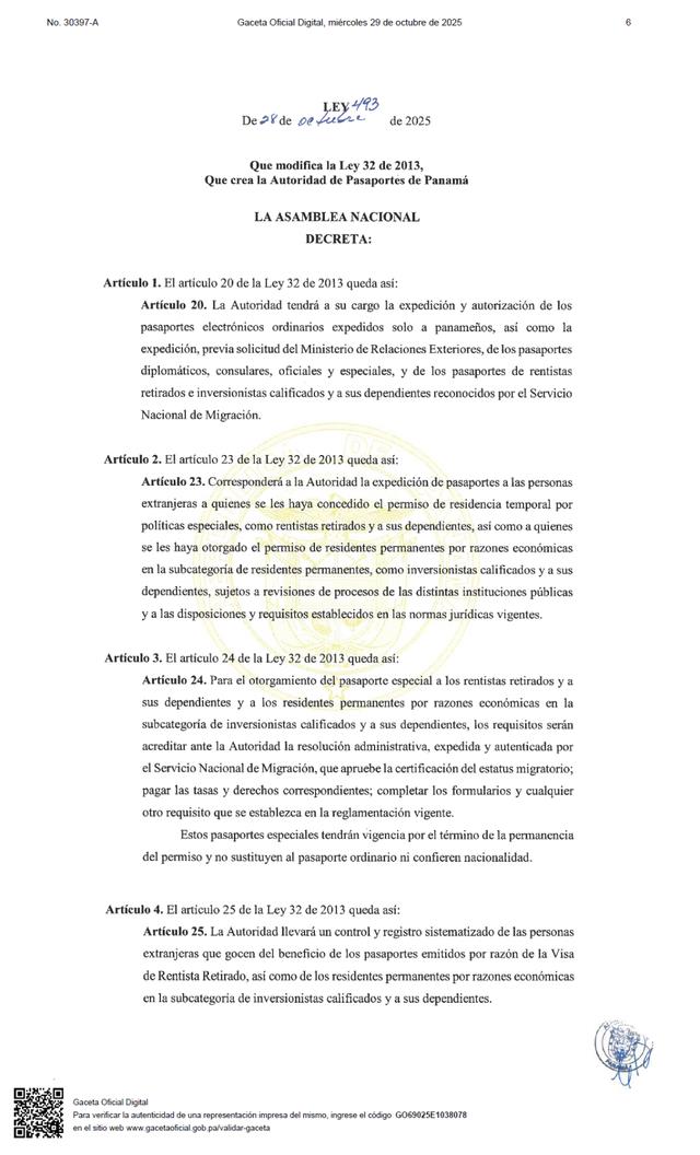 10月底,巴拿马移民政策迎来里程碑式变化:2025年10 月28日,总统正式签署《2025年第493号法律》,并于次日生效。