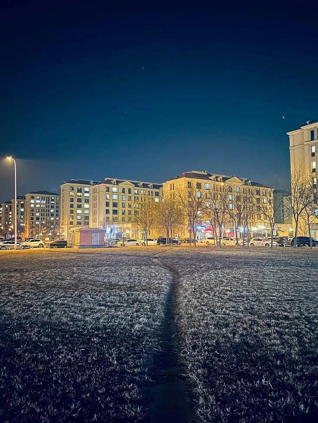 夜晚的晴空有星星,草面上结了一层霜,一路走过去大概两首歌的时间,这是独属于我的惬意时刻。(@Caiyanan)