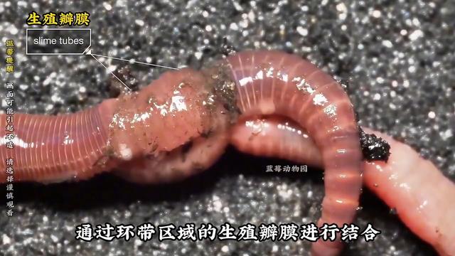 很快,两条拥有同样目的的蚯蚓相遇了,它们紧紧的缠绕在了一起。同时生殖带会分泌出大量粘液,然后双方身体呈相反的方向排列,通过环带区域的生殖瓣膜进行结合。它们相互交换精子,整个过程会持续一个小时左右,精子在体外完成传输,通过体节接触区域进入体内的储精囊完成储存。