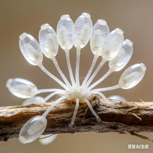 · 奇怪之处:每粒卵由一根细丝高高举起,远离叶面,像微型的“气球森林”。这可能是为了避免被地面捕食者袭击,孵化时幼虫会沿丝滑下。