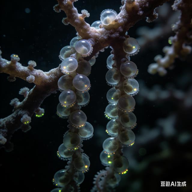 · 奇怪之处:雌章鱼会将数万至数十万枚卵连成细长的凝胶状卵串,悬挂在洞穴中,并守护数月甚至数年(期间不进食,最终死亡)。卵粒像一串串微型葡萄,半透明,可看到内部发育的胚胎。