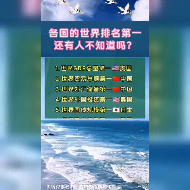各国的世界排名第一,还有人不知道吗?
