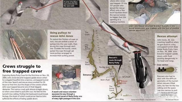 绳索拉拽、钻头扩宽岩壁,甚至连小区域炸药都尝试了,可都无法将约翰从这个“死亡洞穴”中解救。