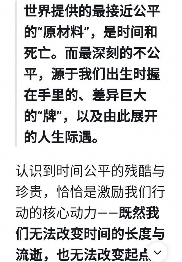 然而,这个答案的深刻之处在于其后续的追问:时间是公平的,但我们在时间里的选择和处境,却从不公平。