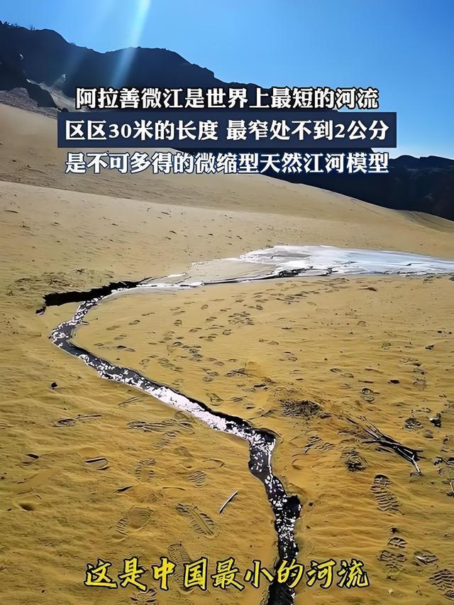 说到河流,你会想到长长的河道,奔腾的水流,壮丽的景色。但你知道吗?世界上最小的河流——阿拉善微江,竟然只有一脚那么宽!它位于中国内蒙古阿拉善地区,细得几乎看不见,轻轻一踩就能改变它的流向。