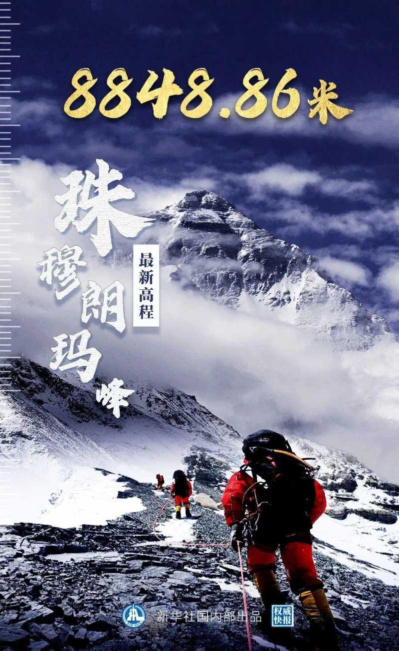 珠穆朗玛峰是地球的最高处,它的最新高程是8848.86米,是全世界户外运动爱好者登山冒险的象征。