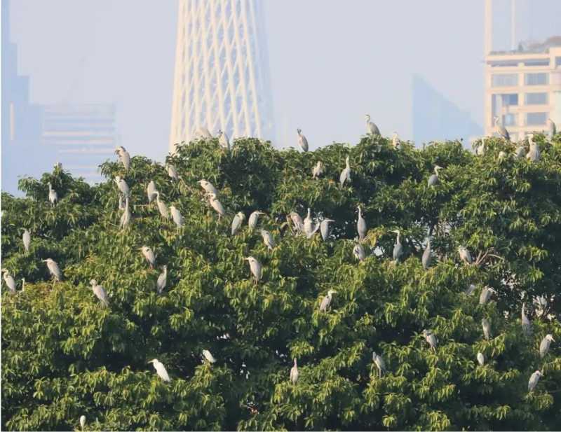 鹭鸟家族大多喜欢群居,甚至还会发生大白鹭,小白鹭,夜鹭,牛背鹭在同一棵树上筑巢的现象,鹭鸟筑巢密密麻麻,且留念旧巢,年复一年在同一棵树上大量筑巢,甚至导致了大树死亡,以及树上植被因为被鸟粪腐蚀而死亡。