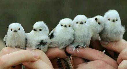 人送外号“小肥啾”,喙特别短,长的好像一只还没断奶的小奶猫。白白的一团好像个大糯米团子。一手可以拿好几个: