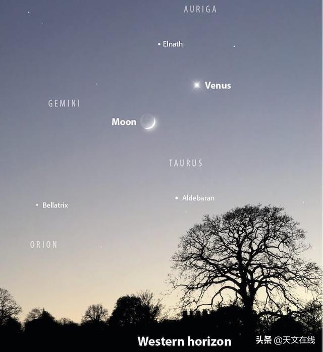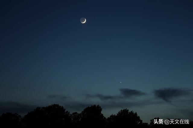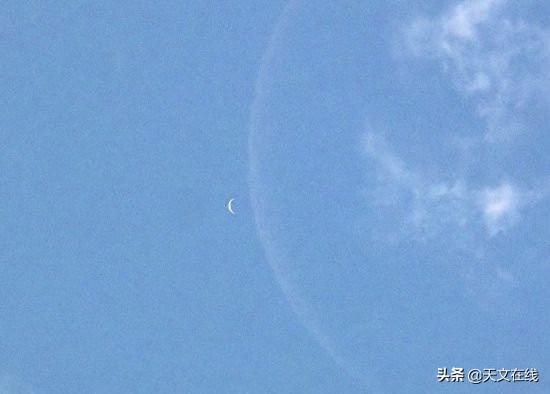 这是白天时,处于新月阶段的金星(l)和月球的望远镜视图 图源:美国国家航空航天局。