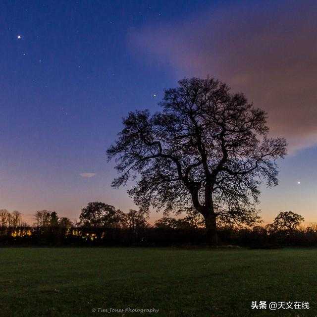 2021年11月27日,英国柴郡切尔福德的蒂姆-琼斯拍摄到了木星(左)、土星(中)和金星(右)的大合照。你看到金星有多亮了吗,尽管它已经接近日落。如果你感兴趣的话,请在日落后寻找这三个星球,并在2021年12月初欣赏最耀眼的金星吧 谢谢你,蒂姆。