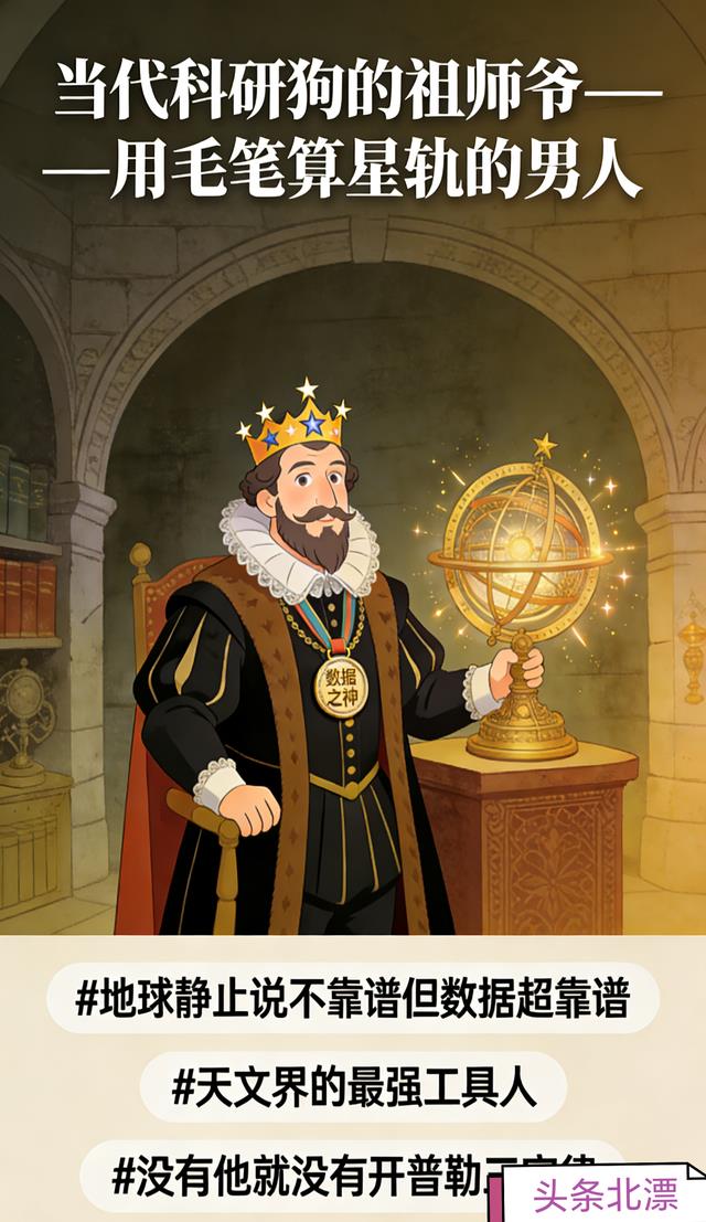 最有意思的是他和开普勒的神仙羁绊,妥妥的“自己没封神,却捧红徒弟的幕后大佬”!第谷斥巨资建了当时全球顶尖的天文台,把才华横溢的开普勒招到身边,自己脑洞出“地球静止说”没掀起太大水花,也没琢磨出惊天理论,可他那手精准到可怕的数据,却成了开普勒的“成神跳板”,开普勒后来震惊世界的行星三大定律,全是靠着扒他的观测数据算出来的