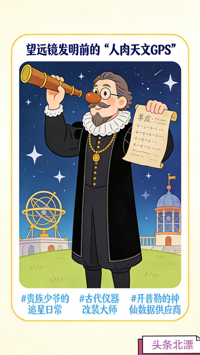 谁懂啊!16世纪的天文圈,还没望远镜这开挂神器,全靠丹麦大佬第谷·布拉赫撑起精准观测的一片天!这位妥妥的贵族少爷,家境优渥不愁吃穿,别人贵族子弟忙着享乐社交,他倒好,一头扎进星空的世界里,打小就对天上的星星月亮痴迷到不行,妥妥的天文界“早慧卷王”,13岁就拿着自制简易仪器蹲守夜空,开启了追星星的一生✨