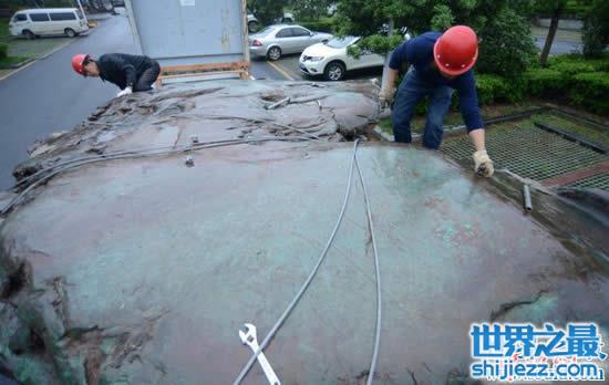 近日,在第四届中国(湖南)国际矿博会将于2016年5月19日至23日在湖南省郴州市举办,这块世界最大的自然铜也现身矿博会。这块自然铜的出现吸引了所有人的注意力的重点在于他的形体一眼望去就像是一块大型的中国地图,非常的新奇。世界最大自然铜现已被考古学家和地质学家们列为重点研究对象了,近日因为第四届中国(湖南)国际矿博会将举行,工作人员将运用运用机械设施将其运到展区位置。