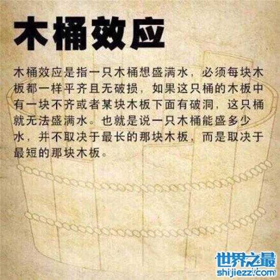 美国的管理学家彼得当初提出这个木桶效应,从原理中得到一个结论。其实这些都是比较形象化的比喻方法,却运用的极为巧妙。人们往往也将木桶效应这个原理使用到我们日常生活中,因此范围也越来越广泛,境界也更加的高一些。