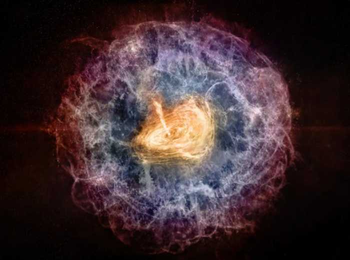 在研究VT 1137-0337的特征时,天文学家考虑了几种可能的解释,包括超新星、伽马射线暴或潮汐破坏事件,其中一颗恒星被一个超大质量的黑洞撕碎了。他们的结论是,最好的解释是脉冲风星云。
