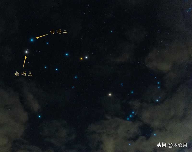 【五车二】御夫座α,是全天第6亮星,在北半球仅次于大角星和织女星,是北天第三亮星。英文名Capella,意思是小山羊。目视星等0.08,距离我们42.2光年,五车二是一个大家族,由4颗恒星组成。包括两颗明亮的巨星Capella Aa,Capella Ab和两颗暗淡的红矮星Capella H,Capella L。