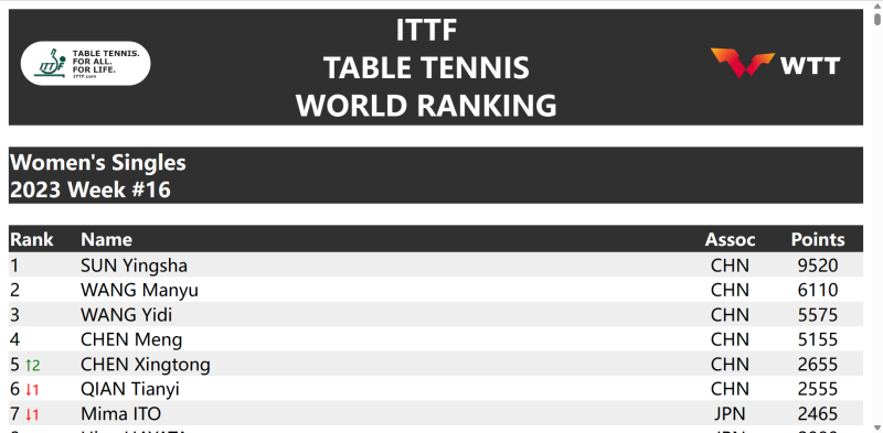 本周世界排名包揽前六,中国女乒太强了,居然还不是历史之最!