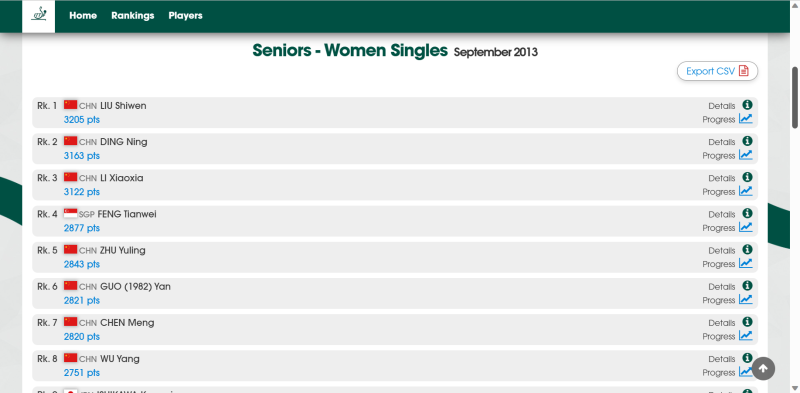 2013年9月,中国女乒创造了另一项极限排名,女单前8人中有7人是国球手。其实,排在第四的也是在国内打下的扎实基础,她是当时新加坡队的一号角色冯天薇,此将为海外兵团历史上最优秀的球员之一,2010年在莫斯科举行的世乒赛团体赛她和队友合力击败中国队夺得女子团体冠军。有必要提醒的是,兵败莫斯科世乒赛,是1991年世乒赛中国女乒唯一一次丢失考比伦杯。