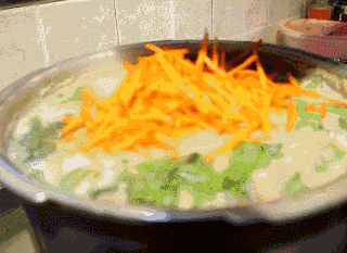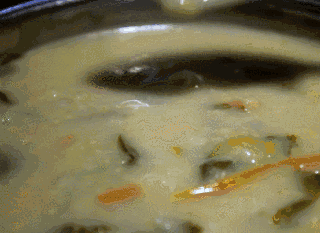 加入小米、大豆、花生仁、香菜等配料一起熬煮。