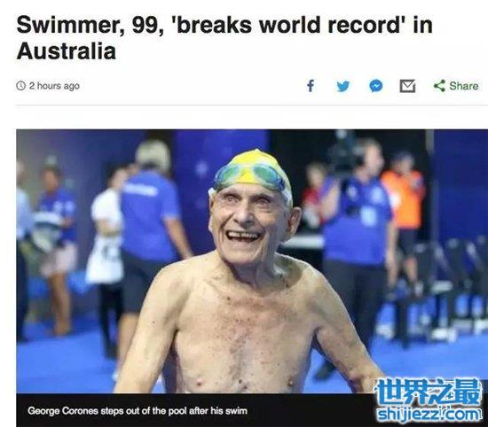95岁大爷打破游泳世界纪录 60年一直锻炼从未间断