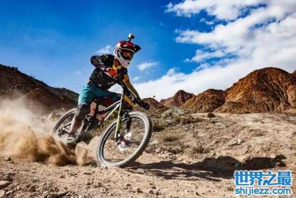 速降自行车是一种极具挑战性的极限运动,活动场地主要分布在矿洞、雪地、山脊等地带,骑手利用特殊自行车在山坡上滑翔通过坠山来寻求刺激,最新的世界纪录是由奥地利人利用DH创造的210.4KM/H。