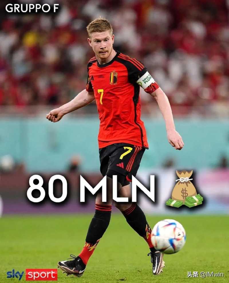 F组最贵球员:德布劳内 8000万 比利时