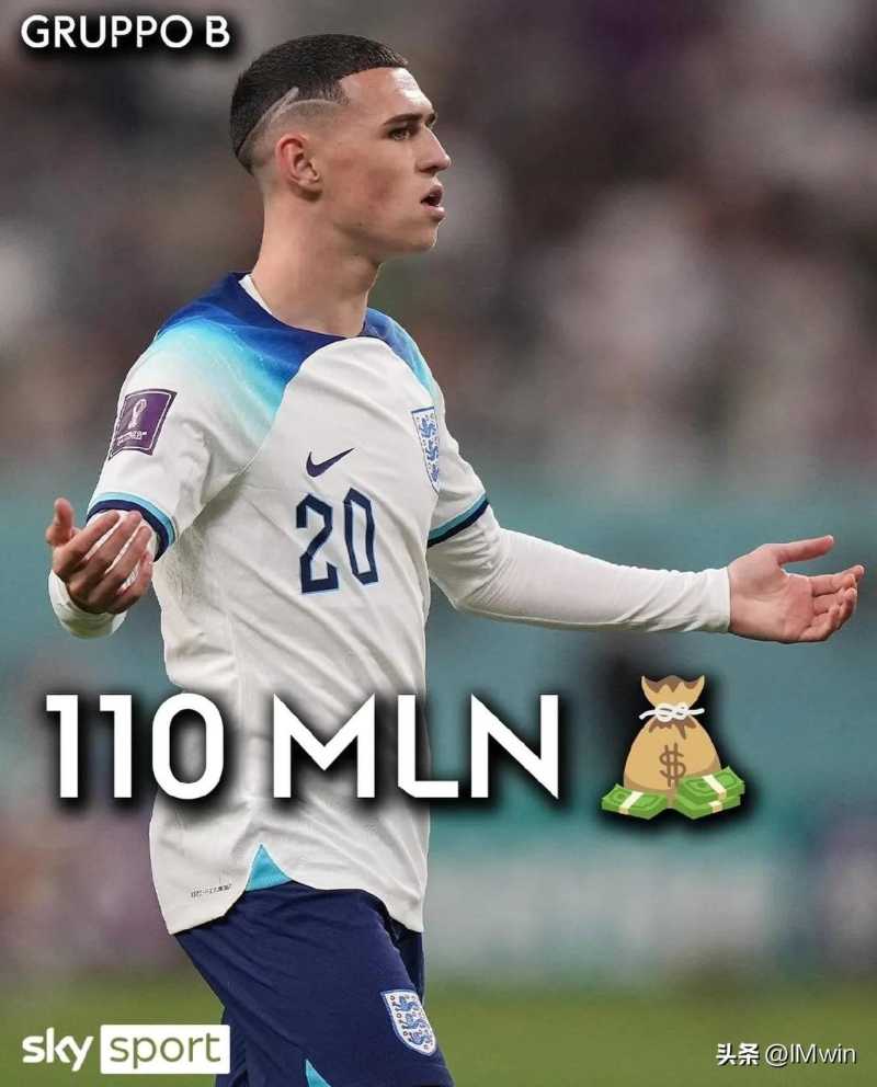 B组最贵身价:福登 1.1亿 英格兰