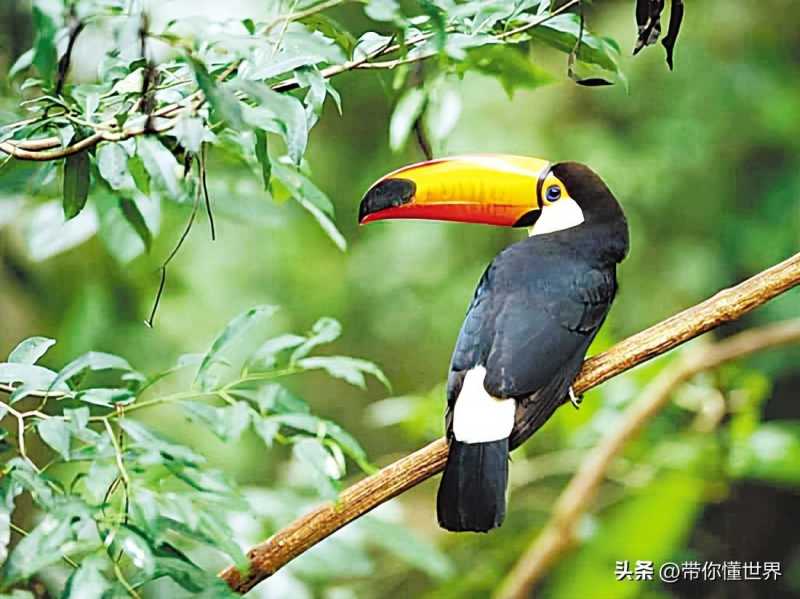 生活在阿根廷和墨西哥的热带森林中的巨嘴鸟是世界上嘴巴最大的鸟,它们的体长一般为60厘米,嘴巴的长度却达到了24厘米。巨嘴鸟的嘴外面是一层壳,中间是充满空气的海绵状骨质组织,所以它们的嘴虽然大,重量却很累,最重的还不到30克,因此,嘴对于他们来说没有太大负担 。
