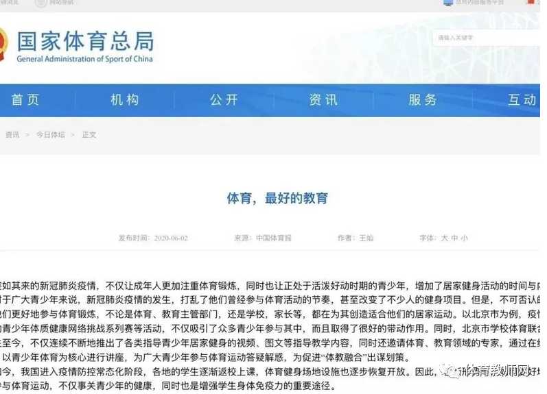 日前,教育部印发《关于在常态化疫情防控下做好学校体育工作的指导意见》,对做好常态化疫情防控下学校体育工作提出指导意见。其中,不仅对青少年在校期间参与体育活动的场地设施等提出要求;同时,对参与的体育项目也提出建议。最为重要的一点是,明确要求“切实落实每天锻炼一小时要求”。