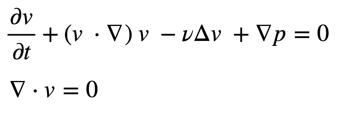 我最喜欢的F = ma版本是 Navier-Stokes 方程,它本质上是F = ma的重写,用于通过将流体建模为连续体来描述流体的运动。我最喜欢的方程式版本如下: