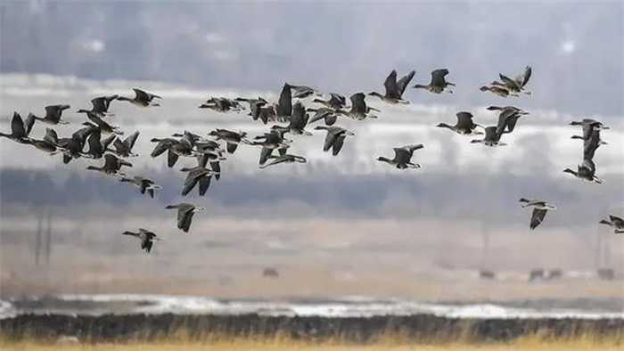 鸟类迁徙远比我们想象中要艰辛很多,因此,无论是哪一种候鸟,在迁徙时,都会尽可能少的休息(天敌、环境陌生等等),从众多迁徙的鸟类来看,迁徙路线最远的当属北极燕鸥了,它的单程可达1.9万公里,而不停的飞行最远的鸟当属斑尾塍鹬了,它能在不进食的情况下,连续飞8天,路程长达1.1万公里。
