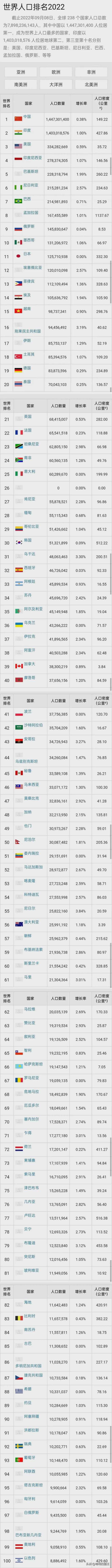 人口超过一亿的国家有中国、印度、美国、印度尼西亚、巴西、巴基斯坦、尼日利亚、孟加拉国、俄罗斯、墨西哥、日本、菲律宾、埃塞俄比亚。中国人口约14.14亿,总人口占比18.82%;印度人口约13.27亿,总人口占比17.86%,年均1.2%增长率,十年内超过中国人口数。